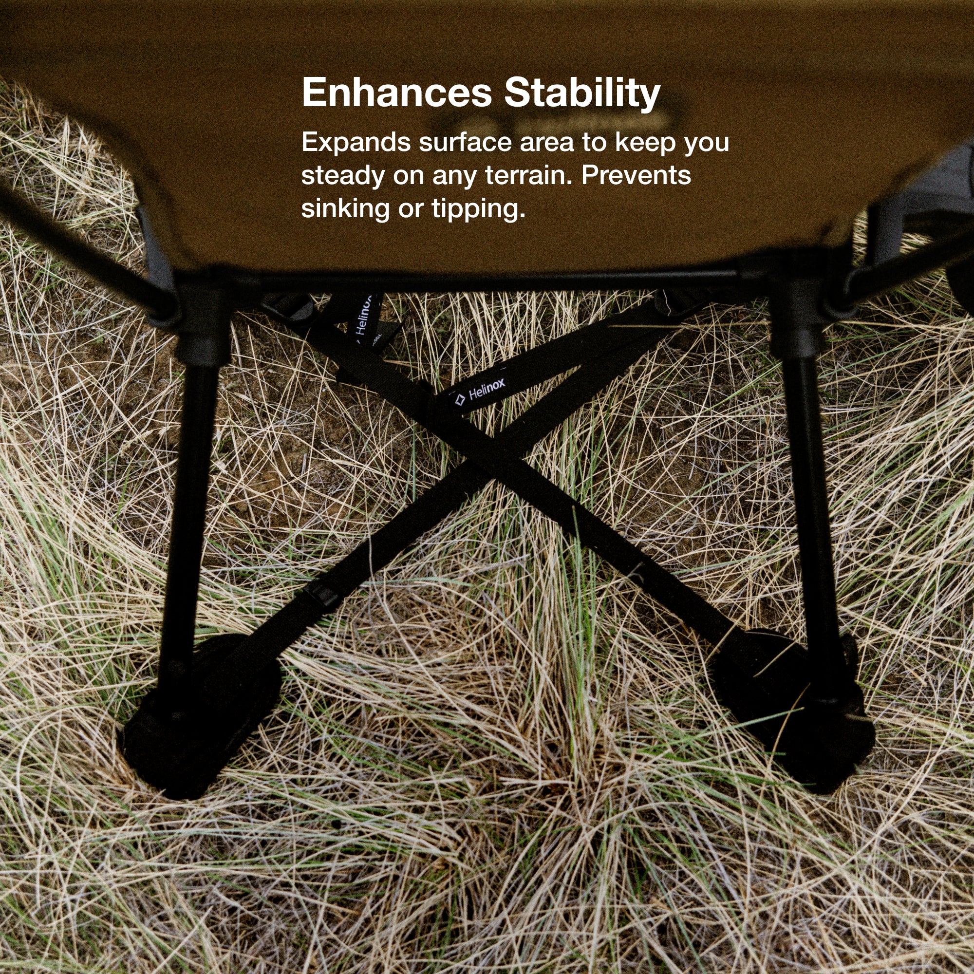Keep your setup steady with our lightweight, packable stabilizer—designed to boost surface area and prevent tipping on uneven ground. The adjustable fit works with every Helinox chair and table, so you’re always covered.