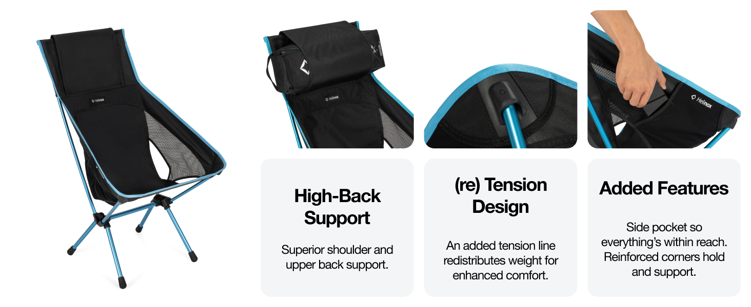This new technology adds a second tension line within the perimeter of the chair to distribute weight around the frame, redefining standards of comfort in outdoor furniture. This high-back version offers more shoulder and upper back support.