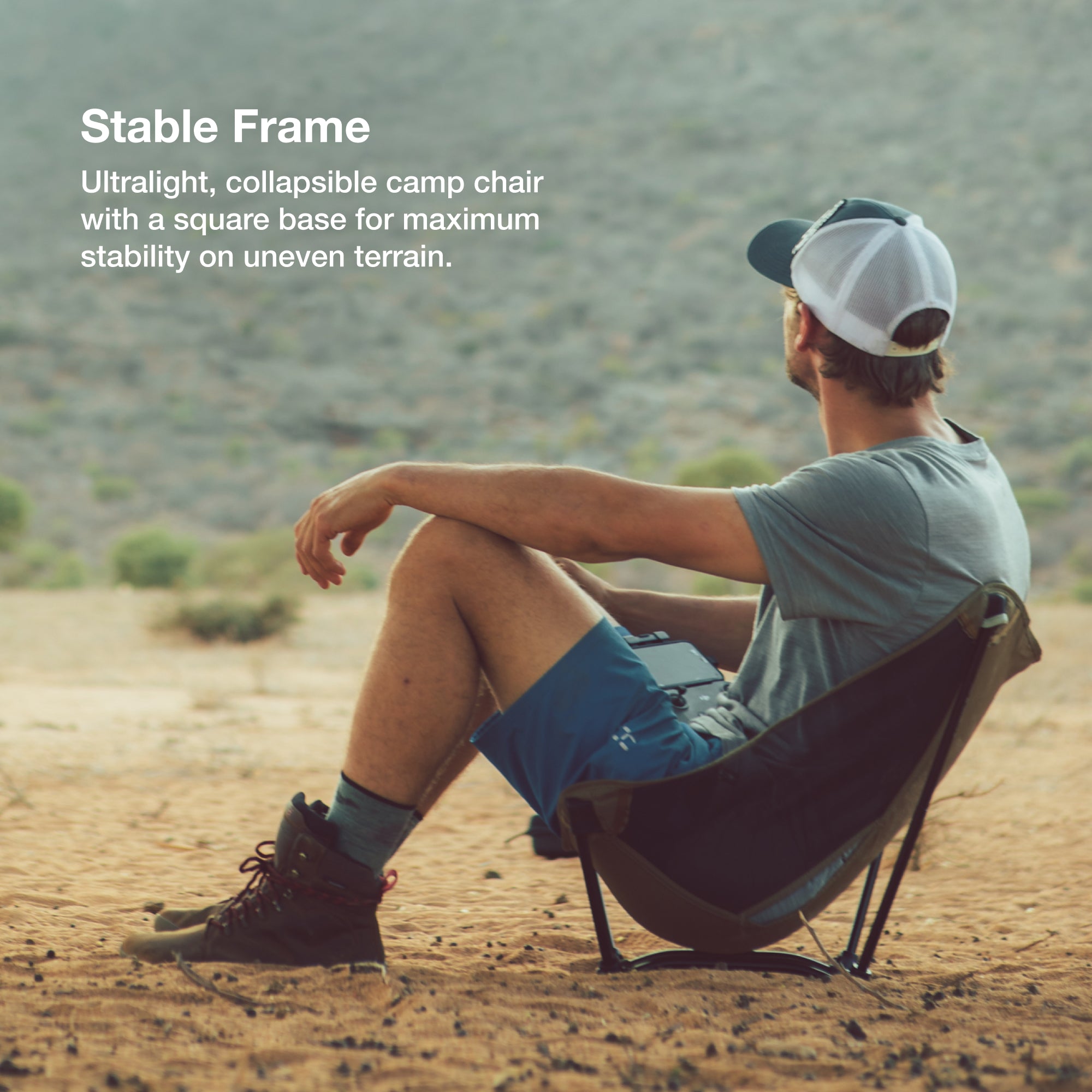 The unique square base of the ultralight Ground Chair means no more chair poles sinking into the sand. Strong and supremely packable, it’s the chair to pack on your next canoe, kayak, or bike touring adventure.